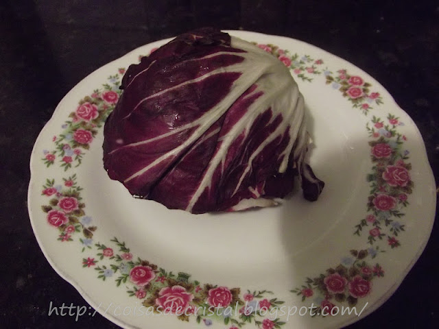 Obs: Antes de utilizar o radicchio, coloque de môlho em água morna, por alguns minutinhos, para tirar o amargô. Não repita o meu erro, colocando a água quente, porque senão as folhas ficam marron, feias e sem gosto, perdendo a crocância. Isto eu testei!